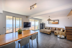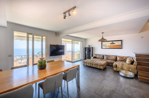 Bénéficiant d'une exposition plein sud, l'appartement offre un ensoleillement optimal ainsi qu'une vue panoramique imprenable sur la mer et Monaco.