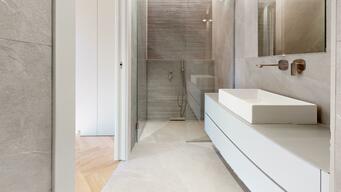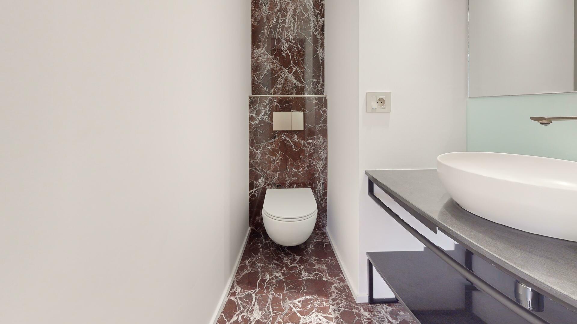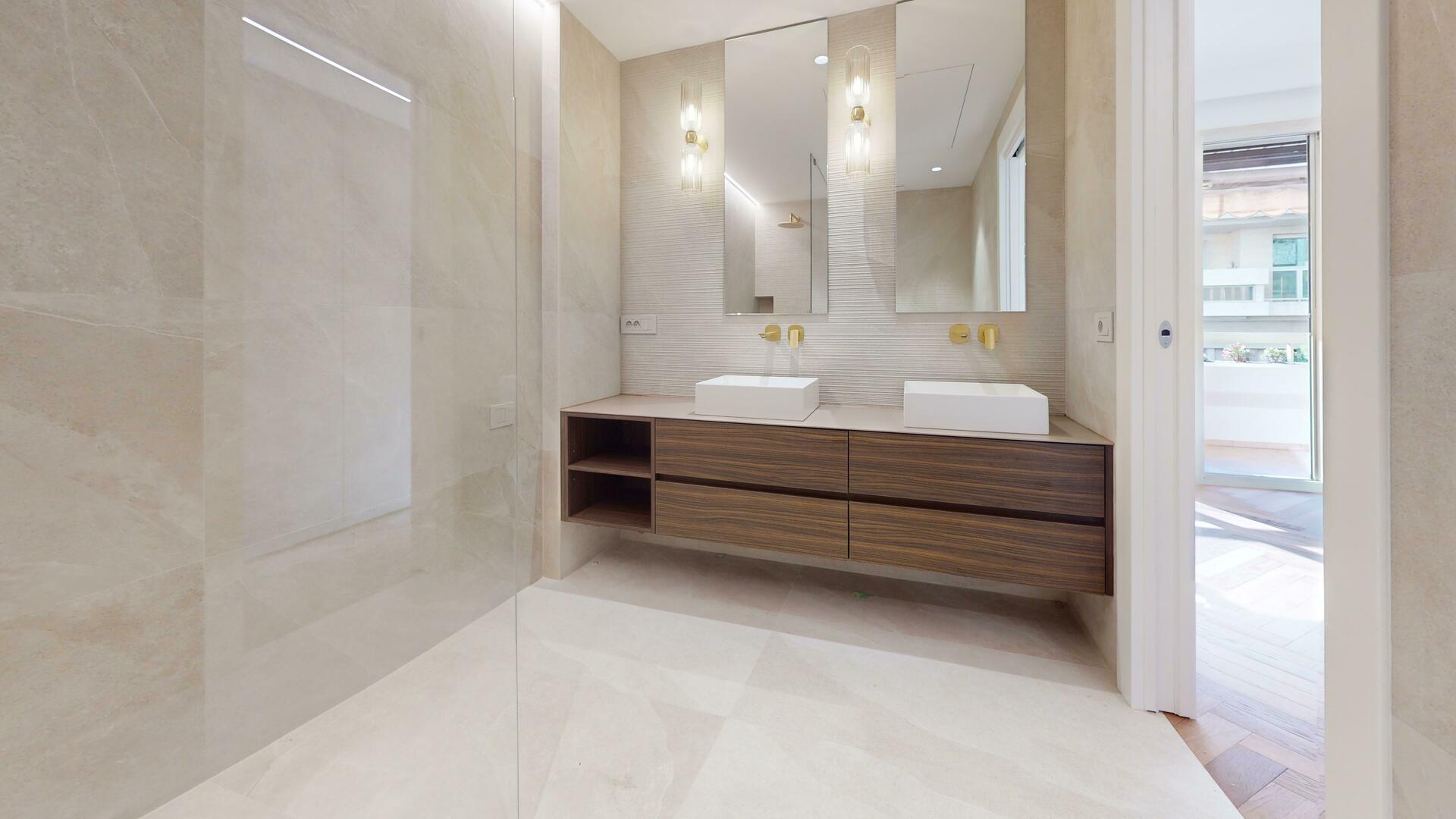 Ce splendide appartement dispose de deux chambres. La suite parentale comprend un espace bureau, une vaste salle de bain avec toilettes ainsi qu’un grand dressing. La seconde chambre bénéficie également de sa propre salle de bain avec toilettes et de généreux placards de rangement.